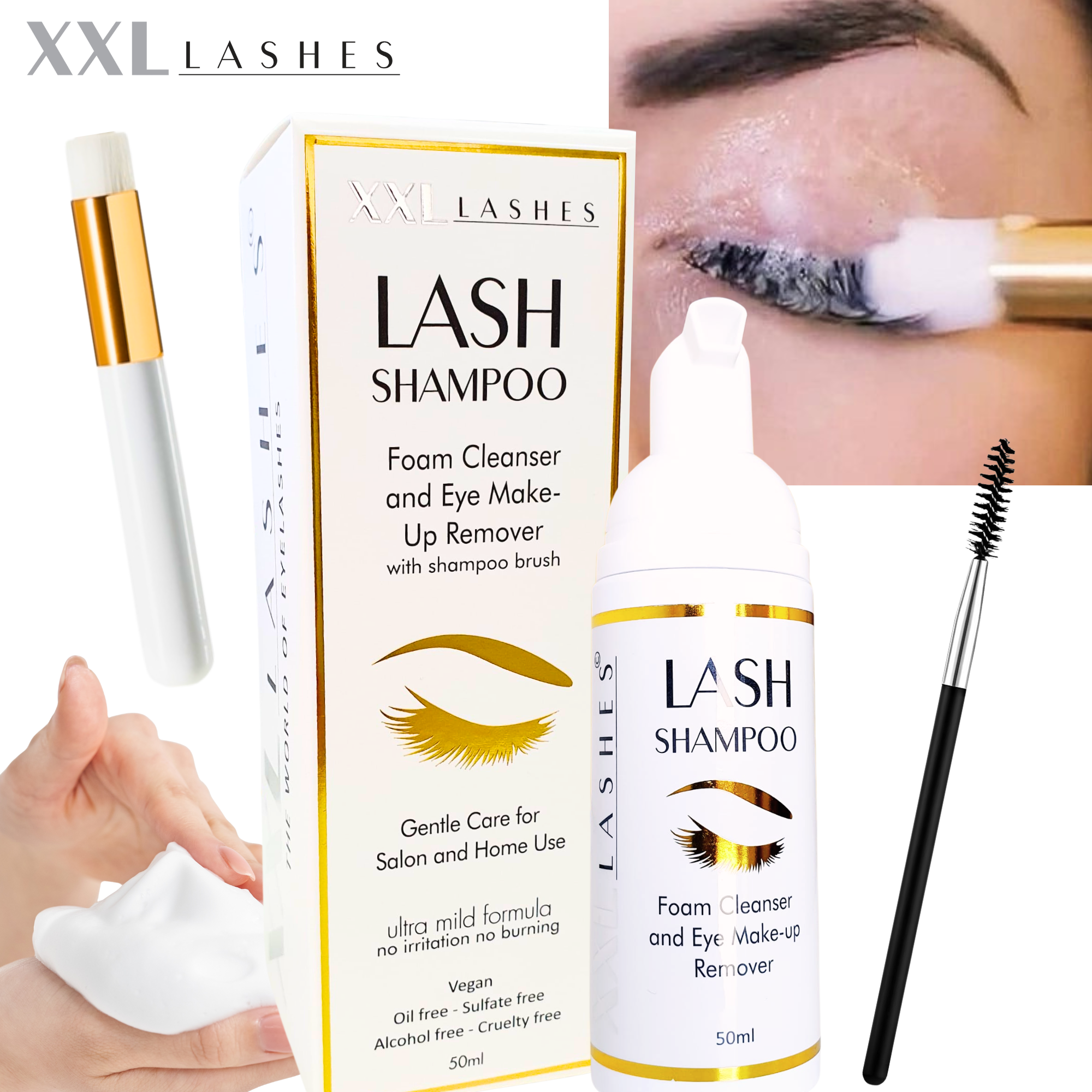 Das XXL Lashes Wimpernshampoo wurde speziell für die sanfte Reinigung von natürlichen Wimpern, Augenlidern und Wimpernextensions entwickelt. Dank seiner verbesserten Formel und des optimierten Schaumpumpspenders fühlt es sich jetzt noch angenehmer in der Anwendung an und reinigt gleichzeitig effektiver als zuvor.