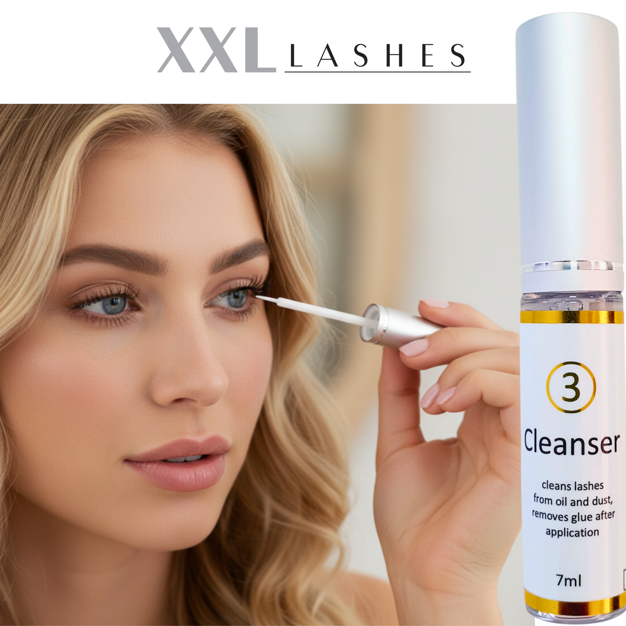 The cleanser's most important quality is that it has no negative effect on the bond strength of XXL Lashes adhesives.
